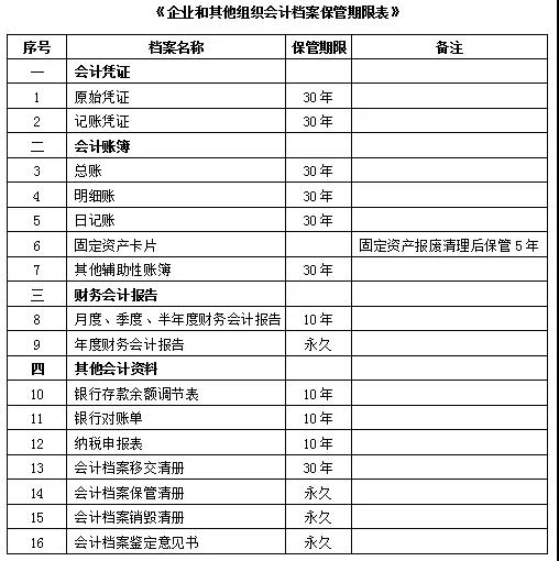 (注:稅務機關的稅務經(jīng)費會計檔案保管期限,按行政單位會計檔案保管期限規(guī)定辦理。)