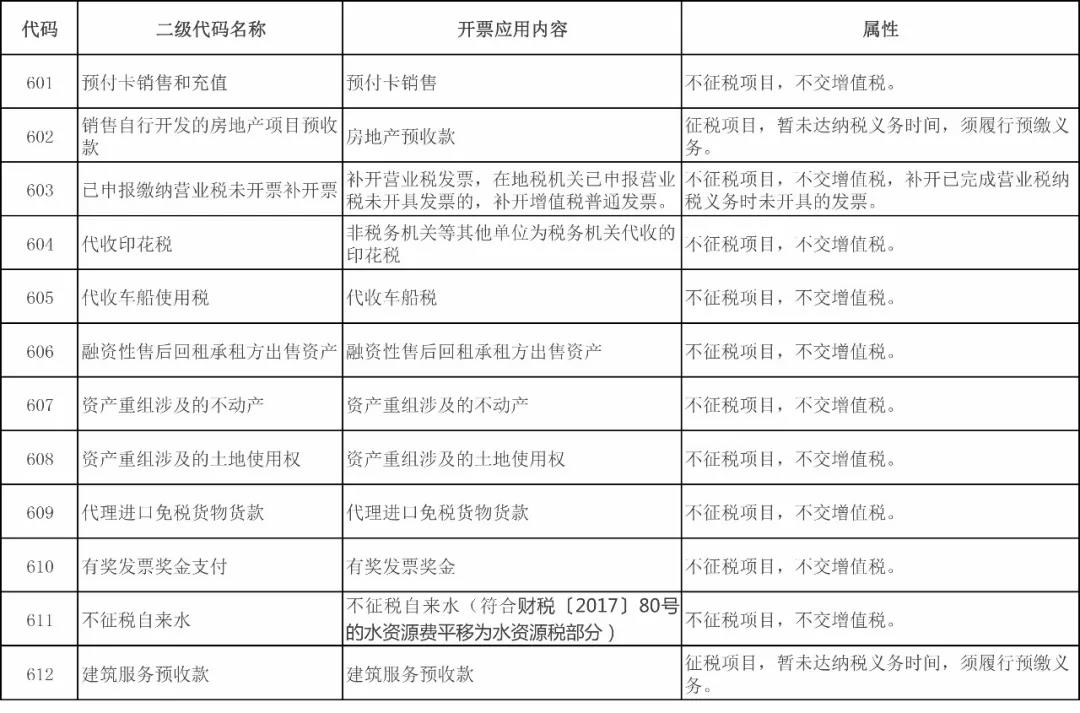 后續(xù)發(fā)票開票系統(tǒng)中不征稅發(fā)票代碼陸續(xù)增添項(xiàng)目,截止目前代碼增加了604至612,不征稅發(fā)具的開具模式,打破了不征稅項(xiàng)目開收據(jù)不開發(fā)票的慣性思維,對(duì)于特定的不征稅項(xiàng)目應(yīng)按規(guī)定開具不征稅發(fā)票。