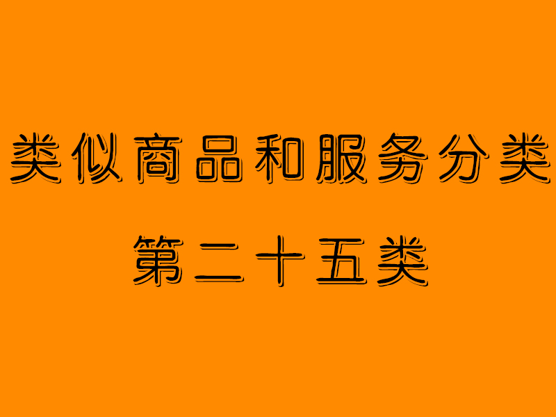 第二十五類 服裝,鞋,帽。 【注釋】 2019版修改注釋: 第二十五類主要包括人用的服裝、鞋和帽。
